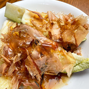 薄くスライスした水なすにオリーブオイルと塩で。爽やかな味わい。