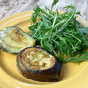 焼き目が香ばしい水ナスステーキ。ジューシーで心地よい食感。