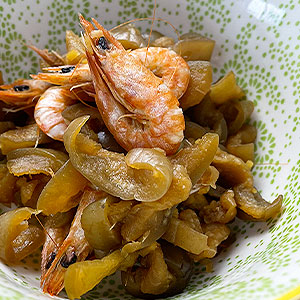 水ナスとエビのピリ辛チリソースのハーモニー。