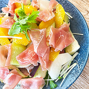 水なすと生ハムの絶妙コンビ。シンプルで上品な一品です。